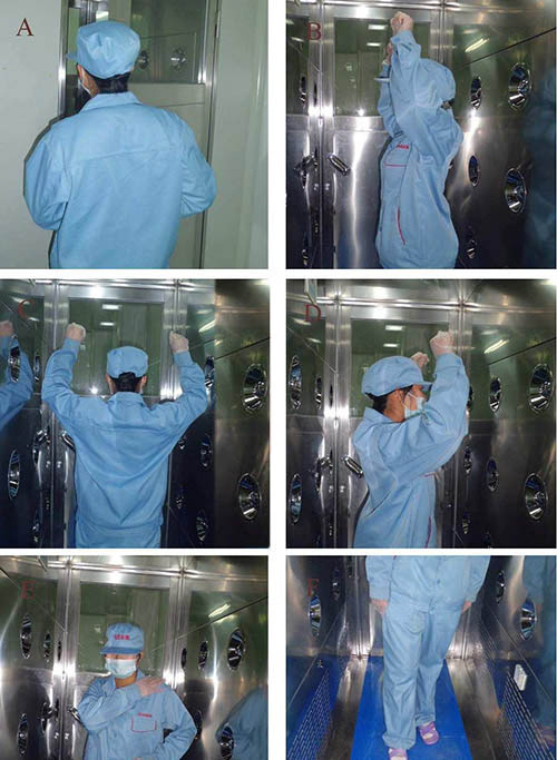 3.進(jìn)入風(fēng)淋室,關(guān)閉進(jìn)門后,吹淋立即啟動(dòng);吹淋完畢后,進(jìn)門以鎖閉,只能打開出門,從出門走出,此時(shí)不能強(qiáng)行推開進(jìn)門,否則會(huì)損壞雙門互鎖系統(tǒng)。