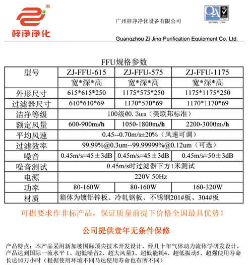 說明:標準FFU1175*575*250的一般有現(xiàn)貨,其它標準FFU需要訂制,一般貨期7天內(nèi)。