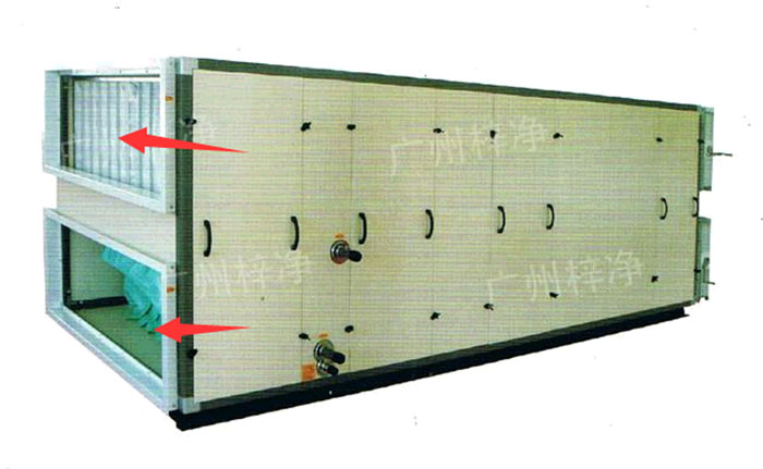 (1)水平層流式:水平式空氣自過濾器單方向吹出,由對邊墻壁的回風(fēng)系統(tǒng)回風(fēng),塵埃隨風(fēng)向排出GMP凈化車間外,一般在下流側(cè)污染較嚴(yán)重。