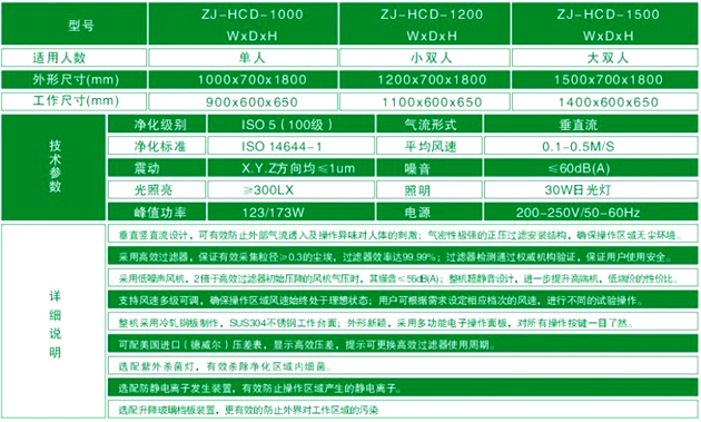 梓凈水平流超凈工作臺(tái)技術(shù)參數(shù)