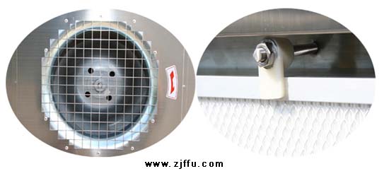 9、保護網(wǎng):鋼網(wǎng)噴塑,進出風面均有金屬護網(wǎng)。