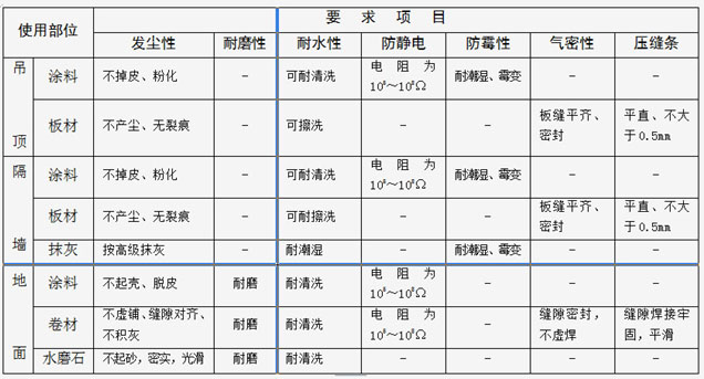 潔凈室裝飾表面質(zhì)量要求一覽表