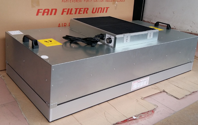 FFU工作通電后,風(fēng)機(jī)運(yùn)轉(zhuǎn),離心風(fēng)機(jī)將空氣吸入,空氣到達(dá)FFU靜壓箱內(nèi),利用風(fēng)機(jī)壓力的作用空氣到達(dá)高效率過(guò)濾,通過(guò)高效率過(guò)濾后的空氣達(dá)到100級(jí)(美國(guó)聯(lián)邦209E標(biāo)準(zhǔn))然后均勻地送出。