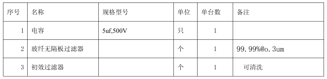 FFU定期維護(hù)項目包括馬達(dá),風(fēng)機(jī),電氣部件等。QQ圖片20151203120008表 4 ?消耗性部件的更換期間 ( 我司建議 )